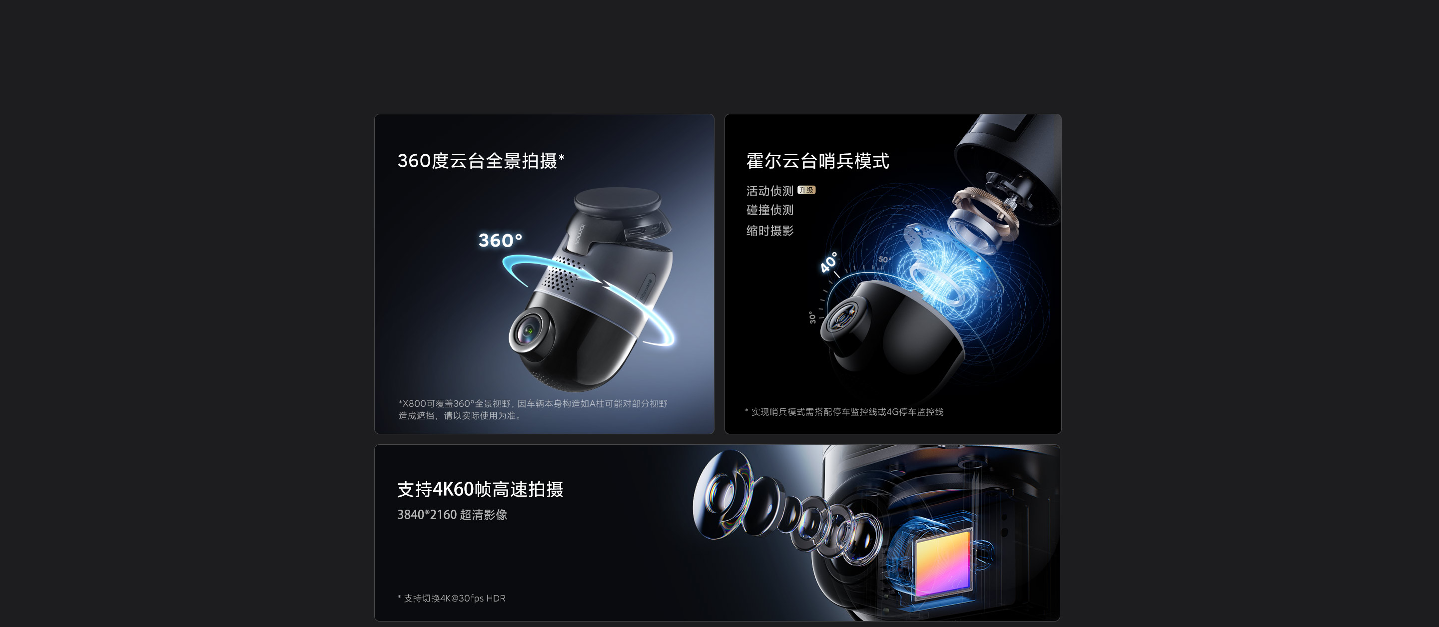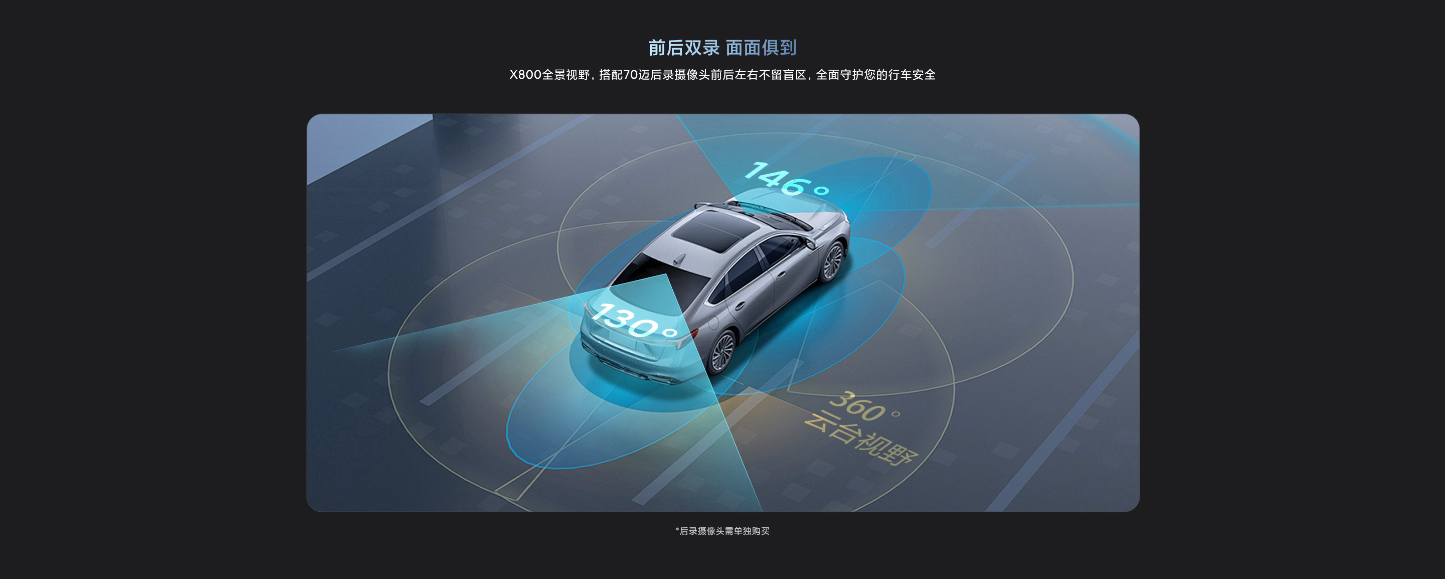 X800可在340°范围内平稳旋转,结合146°镜头视场角覆盖360°全景视野*,满足多角度拍摄